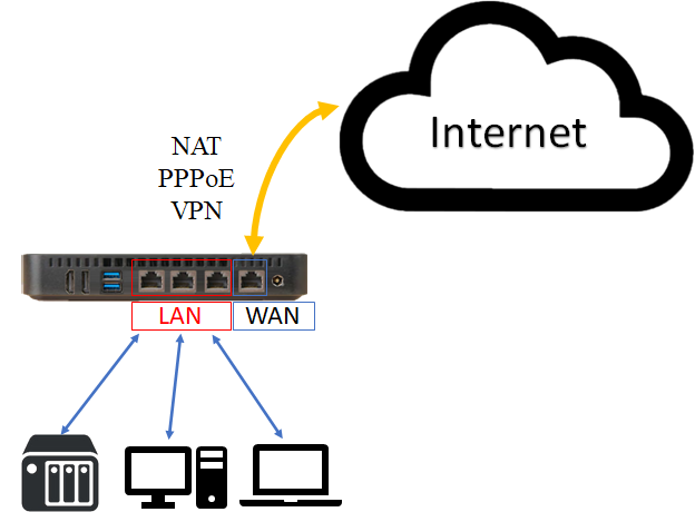 軟路由可以執行相關路由協定 NAT,PPPoE 和VPN等如下圖fig.2所示,甚至虛擬化軟體像ESXi 或是合併作為HTPC做撥放影片等其他用途使用,因此軟路由十分依賴CPU的效能。